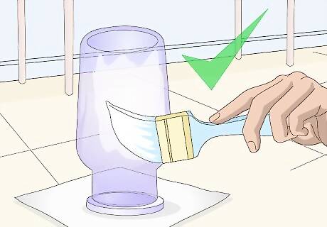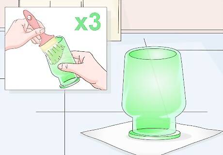 Paint the Mod Podge onto the glass. Turn the glass upside down, so the bottom of the glass is facing you. Using long, downward strokes, apply the colored Mod Podge using a flat paintbrush. You can also tap it on using a pouncer or foam brush instead.