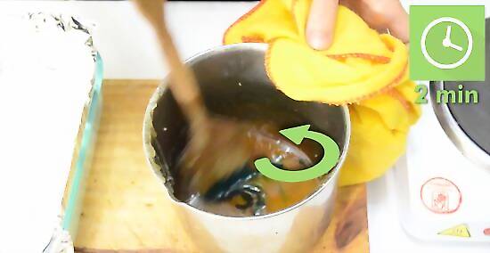 Stir the mixture for about 2 minutes until everything is mixed together. The color should be even. There should not be any streaks or swirls. The candy will be translucent. This is normal. You will be making it cloudy in a later step.