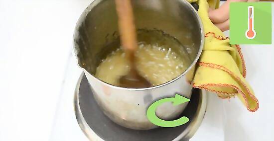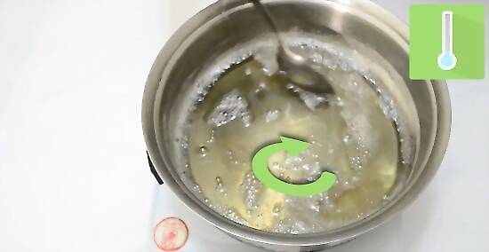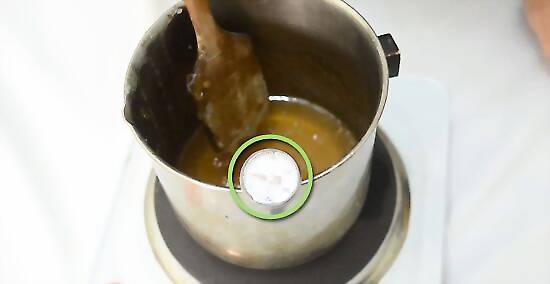 Bring the candy to a boil over medium heat. Do not use high heat, or the candy will boil too quickly and caramelize. As the candy boils, it will create foam-like bubbles.