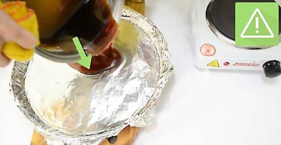 Line a baking sheet with foil or spray with cooking spray. The baking sheet needs to have raised sides, or the melted sugar will slide off. If you don't have cooking spray, wrap the inside of the sheet with tin foil or parchment paper.