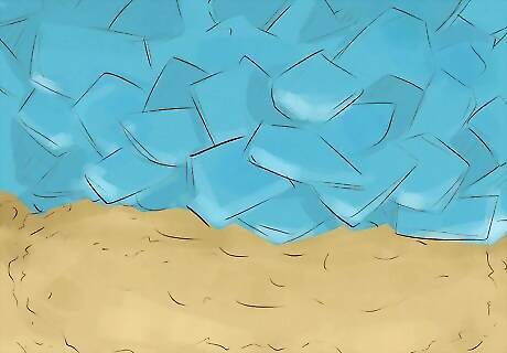 Serve sugar sea glass on some brown sugar and crushed graham crackers to mimic a beach. Crumble the crackers into a fine powder and mix it together with some brown sugar. Spread this on a shallow dish and top it with some sugar sea glass. You can also add some white chocolate sea shells. If you can't find any graham crackers, any thin, cinnamon, honey, or ginger flavored cookies will do.