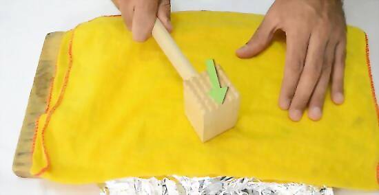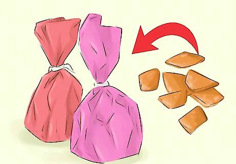 Break the candy into pieces. Cover the candy with a towel or dish cloth. Then, use a hammer to shatter it into smaller pieces. Tap the candy in several places with the hammer.