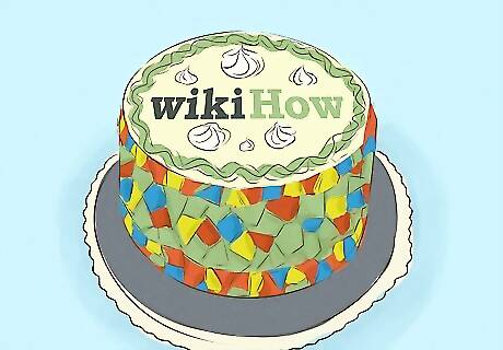 Create a stained glass effect on a cake. Make several batches of sugar glass, each in a different color. Smash them into shards with a hammer. Cover a cake with some buttercream icing, then stick the shards against the sides of the cake.