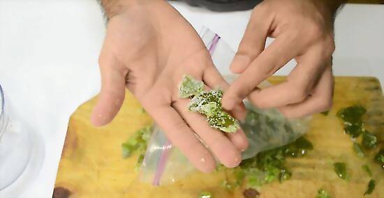 Dust or rub some powdered sugar onto the candy. This will give it that frosted look that real sea glass has. You can also fill a plastic sandwich bag with some powdered sugar, add in a piece pieces of candy, and shake it.