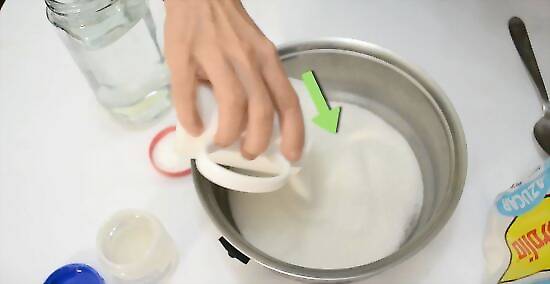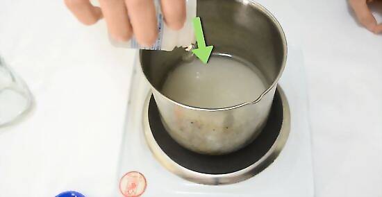 Pour the sugar, water, light corn syrup, and cream of tartar into a pot. Place the pot on the stove. You must use light corn syrup, or the glass will turn out too dark.