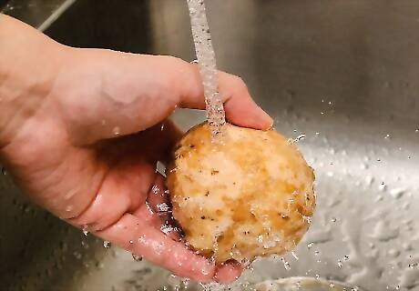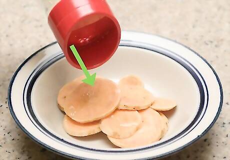 Wash and slice the sweet potatoes. Scrub one pound of sweet potatoes under cold water and peel them. Take a sharp knife and cut the sweet potatoes into slices that are as thin as paper. It may be easier to use a mandolin and slice them on the thinnest setting. A mandolin will give you more uniform chips. You may want to use organic sweet potatoes since you'll be leaving the skins on the potatoes. Studies on pesticides in potatoes found that pesticides are concentrated in the peel.