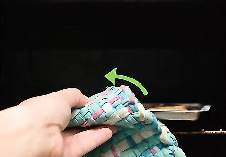 Remove the sweet potato chips. The chips are done once they're crisp and golden brown in color. If the chips were a little thick (more than 1/4 inch thick), they may be firm or tender in the center. Remove the sweet potato chips from the oven and let them rest for 10 minutes. Once they've cooled and crisped, you can serve them. The sweet potato chips won't stay crispy for very long, so try to use them immediately. If you must store them, keep them in an airtight container.