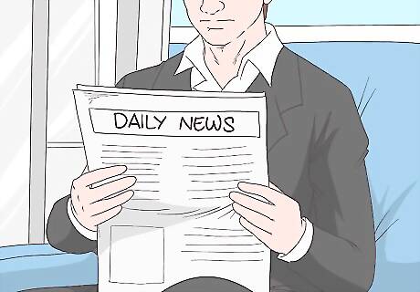 Read the news to stay on top of current and popular events. Pick up a copy of a physical newspaper, or browse your favorite news apps on your phone. If you’re driving, you could even listen to a podcast that recaps the most important news from the day, like “The Daily” from the New York Times or “Up First” from NPR. Twitter can also be a good source to find links to relevant news articles; just be careful to read from reliable sources and double-check your information if it seems sketchy.