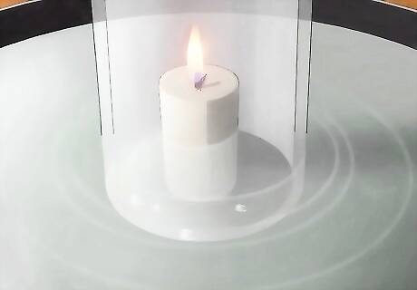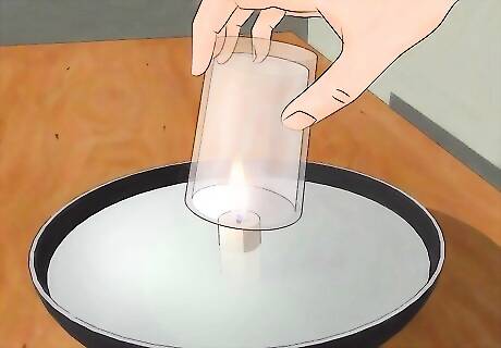 Place the glass over the candle. Flip the glass upside down and set it overtop of the candle. Make sure that the opening of the glass is completely submerged in the water. This provides a seal that prevents air from entering the glass and allows the water to rise into the glass. If the candle is touching the glass, you can either get a shorter candle or a taller glass. This will ensure that the experiment goes well.