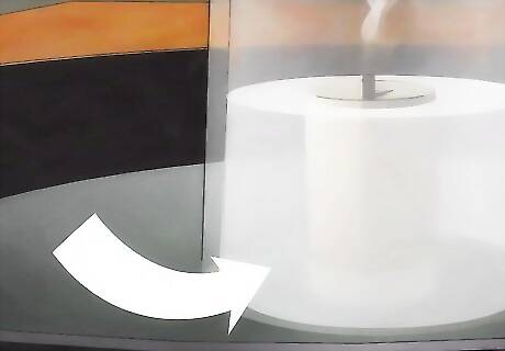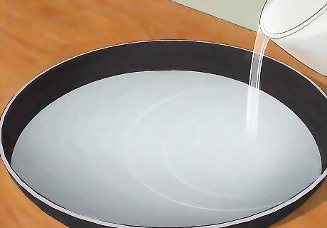Fill a pan with water. The pan should be 1–2 inches (2.5–5.1 cm) deep at least. You need a pan that can hold enough water so that it isn’t all sucked up into the glass. If all of the water gets sucked up into the glass, then air will be able to get in. Since the water is heavier than the air, it will fall back out of the glass because of gravity.