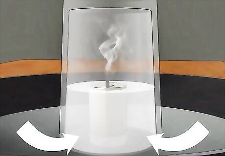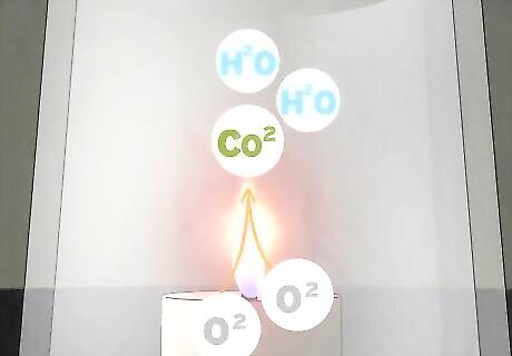 Allow the candle to burn out. The burning candle converts 2 oxygen molecules (2O2) and 1 molecule of paraffin wax (CH4) to 1 carbon dioxide molecule (CO2) and 2 water molecules (2H2O). With no air entering the glass, the candle will burn all of the oxygen available. When the oxygen runs out, the fire on the candle can no longer burn. Though there may be oxygen left in the glass, the candle will go out when it has used up all of the oxygen that is close enough to fuel the flame.