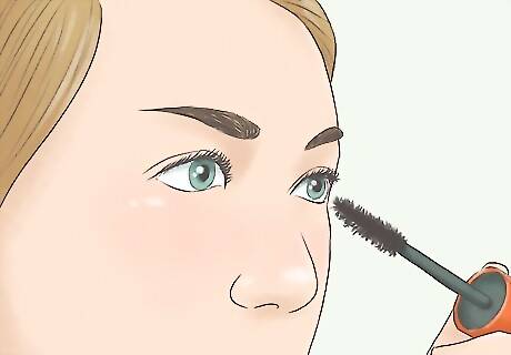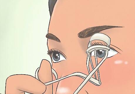Curl your lashes carefully. If you like to curl your lashes, gently place an eyelash curler on top of your lashes as close to your lash line as you can. Squeeze the curler shut, but don’t pump the curler—that can damage your eyelashes and make them prone to breakage. When you’re done squeezing, move halfway down your lashes and squeeze the curler again.