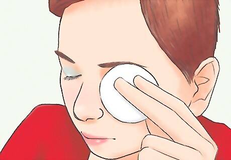 Take your makeup off every night. Before you go to sleep, use a gentle makeup remover to wipe off any mascara and eyeshadow you might be wearing. Follow up with a mild facial cleanser, then pat your skin dry. Leaving mascara on for too long can leave your eyelashes feeling dry and brittle, so it’s important to do this every night. If you wear false lashes, be sure to clean them with a mild cleanser each time you wear them. If you get lash lifts, make sure you're using a lash conditioner daily.