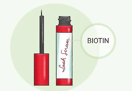 Lash serum can help your eyelashes grow. Pick out a lash serum from your local beauty supply store. Swipe it on at night to prolong the growth cycle (anagen phase) of your lash hairs. You’ll probably see results in about one month, so keep at it! Look for a lash serum with biotin in it for best results. It’s a B vitamin that’s good for your hair, skin, nails, and lashes. While some mascaras may claim they help eyelashes grow, a lash serum is the only product that will actually help.