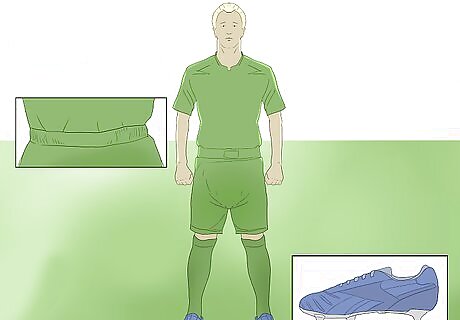 Dress appropriately. Tuck your shirt into your shorts. Wear socks, shinguards, and appropriate footwear. Don’t wear any jewelry. Wear a medical alert bracelet and a jockstrap/cup if applicable. Your cleats should fit well and shouldn’t have any sharp edges on the bottoms.