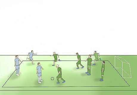 Work on passing. Practice passing at different distances, in both tight and wide areas. Do drills that incorporate controlling, looking and passing with speed. Aim for movement and accuracy. Examples of passing drills are Split the Defenders, No Mans Zone, and The Bank Game.