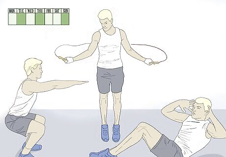 Practice conditioning three times a week. Conditioning involves repetitive activities that improve your preparedness for sport performance. This will help you to build strength and stamina. Create a personal fitness plan for yourself. Alternate between different types of exercise so that you give your whole body proper conditioning.