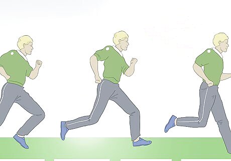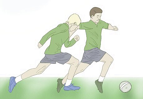 Sprint once or twice each week. Incorporate stretching and jogging into your warmups and cooldowns. Gradually increase your repetitions. When you’re confident at sprinting, add ball dribbling into your sprints.