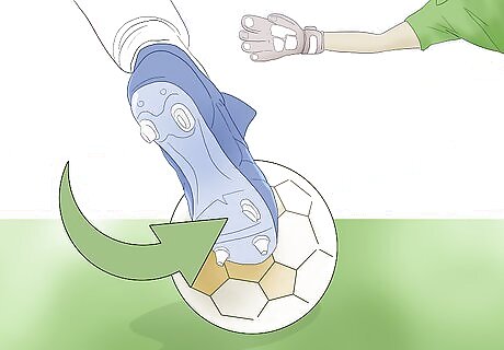 Shoot the ball into the goal. Practice basic kicks using the inside of your foot at the base of your ankle. Lock your ankle for surface area and power, and strike the ball with a quick motion. Practice “chipping” by sweeping the inside of the ball from underneath with your toe. Tilt your striking foot upward and lean your body back for more power. Look for drills that involve corner kicks, shooting on the run, improving accuracy, and using varying distance, angles, and heights.