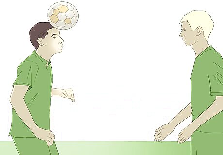 Work on heading drills. Do so against a defender, whenever possible. Practice receiving the ball aerially and heading it into score.