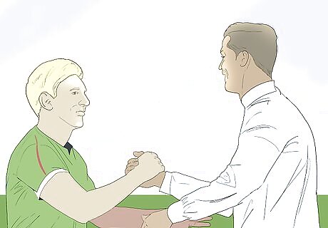 Be self-confident, but also a good sport. Becoming good at sports involves setting goals for yourself and building your self-confidence. It’s important to learn how to be a good sport, not just good at sports. Your school most likely has a code of conduct they expect students to follow as members of the soccer team. Focus on showing good character by graciously accepting defeat when you lose and being equally courteous when you win. These are important core qualities that coaches look for and schools often demand of you.