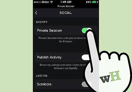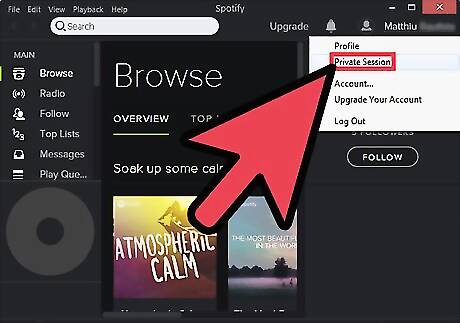 Select “Private Session.” When the menu appears, scroll through it, and click on “Private Session.” You should then see a check mark beside it, which means your entire session is now private, and no one else can see what you are listening to or doing on the account.