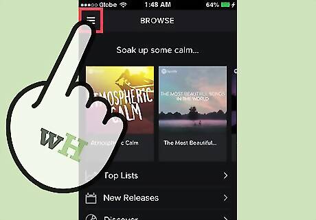 Load Spotify settings. Once you’re signed into your account, look towards the top left side of the app screen for the menu button (that square button with three lines on it). Tap on it to display a menu. Tap on Settings found at the bottom of the list, and your Spotify settings will load on your screen.