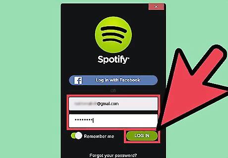 Sign in. Launching Spotify will land you on the login screen on which you will see two text boxes. Enter your username and password into them, and then click on the green login button to gain entry into your account.