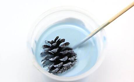 Take your pine cones and dip them completely in, making sure the entire cone is covered. Let it air dry.