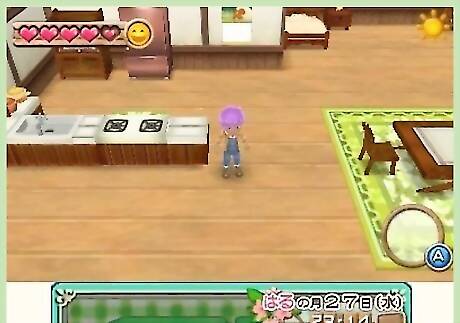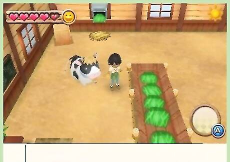Wait for Neil to arrive. Neil will first arrive on Spring 9th of your first year to give you your first animal: A cow. Notice the little black heart on his left side of his chat box. This is his affection for you right now. The affection rises over time with gifts, communication, festivals and heart events.