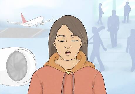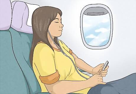 Listen as meditation. When travelling, there are many sounds surrounding you, such as the rhythm of transport explored in an earlier step. Sounds can frustrate you if you're over-tired and anxious but they can also serve as an anchor and ground you if you take them and meditate on them. For example, the sounds of flight announcements, the sound of jet engines, the hubbub of people talking, the music at a cafe, the drone of lawnmowers can all be sounds on which you choose to focus and notice your feelings as they rise and fall. Sounds document the ebb and flow of life, they are neither positive nor negative, and there are empty spaces in between them. Listen attentively and be receptive to how the sounds can provide meditation simply through the act of focused listening. Listen to a piece of music or a song. With portable music players, using music for meditative practices while you travel is extremely easy and can be done on any part of your journey. Pay attention to each note within the music, or to the instruments used, or to the words.