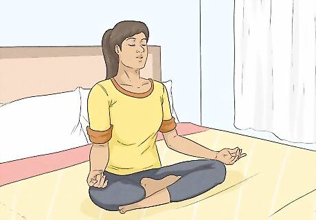 Meditate in your accommodation. Your accommodation will undoubtedly vary from place to place and you will need to make the most of whatever you get. No matter how spartan, plush, or bizarre your surroundings, you should be able to meditate still. Focus on the moment, switch off all distractions such as the TV and cell phone, and find a comfortable part of your hotel room, dormitory, or other accommodation arrangement to meditate for a quarter hour or so each day. If you're sharing a room, either select a time of day when it's likely to be quiet or ask the concierge if there is something quiet where you can go to meditate. Many people will be happy to accommodate your wishes.