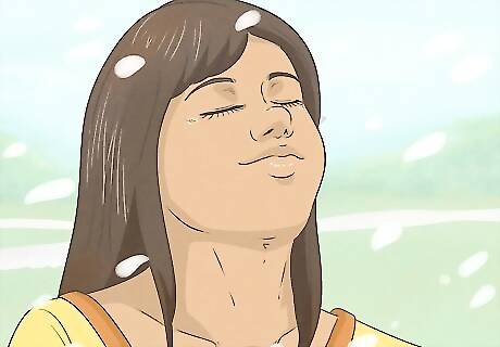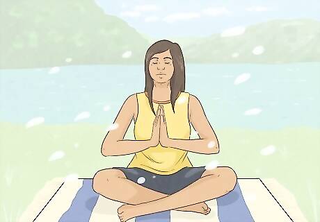 Meditate in nature. Many travel experiences include getting into natural environments, whether it's a botanical garden, a sanctuary, a nature reserve, or a national park. Wherever there is nature surrounding you, you have an opportunity to meditate while contemplating the beauty of nature about you. Go out of your way to experience some nature while travelling. A journey to a new place is not complete without seeking out its natural aspects too. Feel the colors, hear the sounds, and enjoy the energy from nature as you're amongst it. Relax and seek to be at one with the nature around you. Pay full attention to the natural elements that are contributing to your sense of well-being during your journey. Meditate on a flower. Flowers can be found anywhere, even in a hotel foyer. To meditate on a flower, look at the flower in great detail, with love. Take in every detail, color, and its totality. Notice any fragrance that it may have, and whether it is attracting other life, such as a bee, to it. Allow your attention on the flower to open up your experience of the wonders of existence. Exchange energy with the trees. Simply hold your hand against the bark and imagine that you're giving the tree your energy. Afterwards, imagine that some of the tree's energy transfers into you. You can also try exchanging energy with a lot of trees. Hold your hand against the ground and imagine that your energy is "branching out" underground and flowing into the trees. Remember to keep some of the nature's energy.