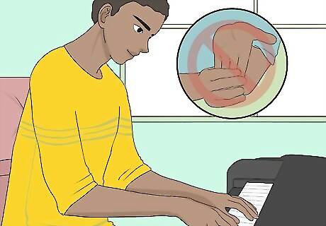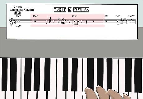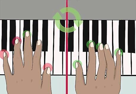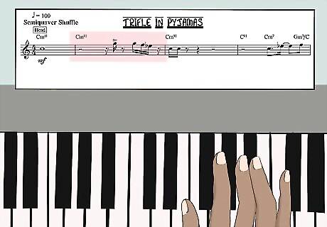 Watch your hands and look for patterns on the keyboard as you play. After you've played the piece through many times, you may find that you already remember many phrases without having to look at the sheet music. Practice only glancing at the sheet music and then looking at your hands as you play. You may notice patterns that you can use to strengthen your visual memory of the piece. If glancing back and forth from your hands to the sheet music causes you to make errors, continue practicing the piece until you can do this and still play it flawlessly.