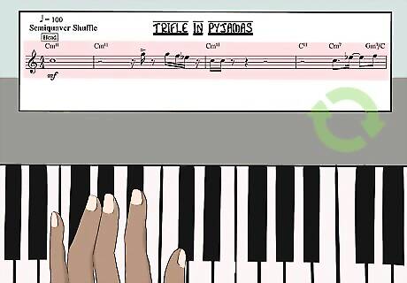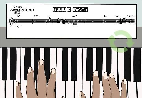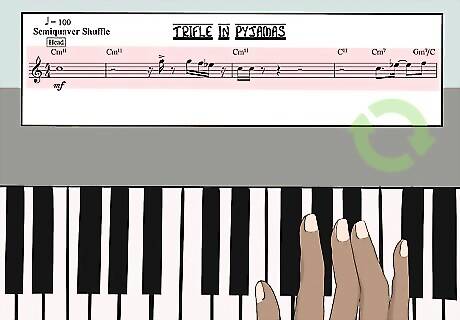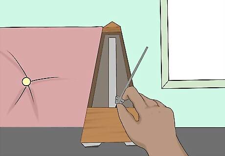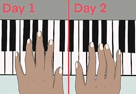 Turn on a metronome and play the piece at half speed. Playing slowly forces you to produce each note from memory, rather than just playing the piece by rote. This exercise ensures that each individual note or chord is preserved in your memory. If you can perform the piece at half speed, you might want to try playing even slower than that. Playing the piece faster doesn't have the same effect and may result in you introducing errors into your playing.