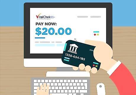 Pay for your birth certificate copies and Vital Chek’s service fees. At the end of filing your request online, the Vital Chek website will request your payment. Vital Chek charges not only for the copy of the birth certificate, but also for its expedited services. Vital Chek charges $39.00 for copies of North Carolina certified and uncertified birth certificates. Each additional copy is and $15.00. Vital Chek accepts Visa, Mastercard, Discover, and American Express. The fee for Vital Chek’s services ranges from $5 to $16 for obtaining the birth certificate. In addition, Vital Chek will charge you an additional fee for whatever shipping method you choose. The price for that will also vary depending on how quickly you want the birth certificate copy.