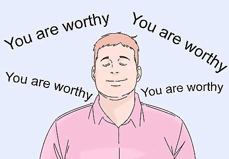 Recite empowering affirmations. When you lack self-confidence, you can trick your brain into thinking you feel empowered by repeating a mantra. Certain words or phrases have the capacity to shift your thinking and help you believe in your abilities. For instance, you might say, “You are worthy” or “You are doing great.” Repeat these aloud for maximum impact.