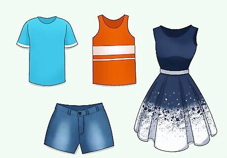 Include typical warm-weather clothing. This includes short-sleeved shirts, tank tops, shorts or sundresses. This way, you'll be able to stay cool. Try and choose clothing that is made of breathable fabric, such as cotton or linen.
