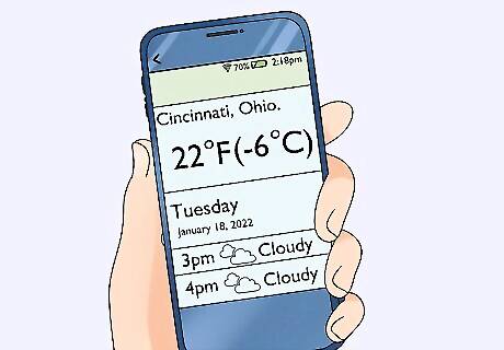 Check the weather forecast before you leave. Around a week before your trip, research "weather in Cincinnati, Ohio". This can help you prepare for the expected temperatures, as well as any possible precipitation.