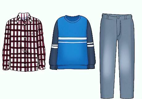 Bring warmer clothing. This includes long-sleeved shirts, pants, sweaters and sweatshirts. Heavier socks can also be helpful. Try and bring clothing made of warmer fabrics, such as silk or wool.