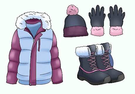 Include winter gear. This includes a heavier jacket, a hat, gloves and boots. These will be helpful for dealing with the cold temperatures and possible snow, especially if you'll be outside a lot.