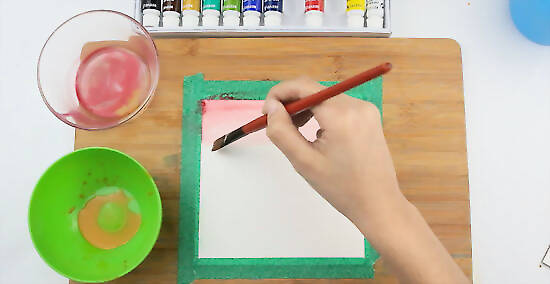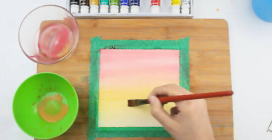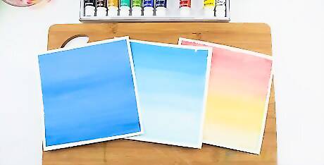 Immerse your brush in one color, and then drag it back and forth across the paper. Add a new color without cleaning your brush. This will create a soft transition between the hues when painting watercolor washes.