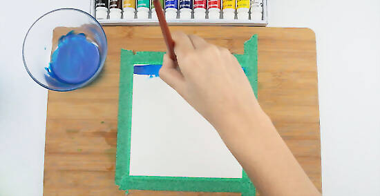 Apply the paint with 1 brush stroke across the top of the square. Continue going down until you fill the entire square.
