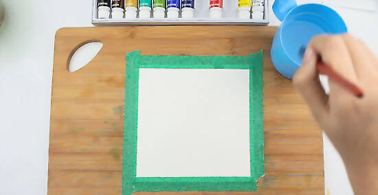 Dunk your brush in the watercolor paint you prepared. When painting watercolor washes, start at the top of the page with a broad, horizontal stroke to the other side. Practice keeping the brushstrokes even and within the square.