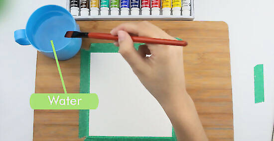 Wet the entire paper by dipping your brush in water and lightly stroking it across the page.