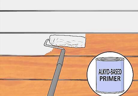 Use a roller and brush to apply 1 coat of oil or alkyd-based primer. Ask your hardware store if they have any specially formulated redwood primers. Use the roller on the straight parts of the sidings and use the brush to apply the primer in all cracks and sides of the siding.