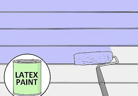Paint the surface of the primed wood with 2 coats of latex paint in the color of your choice. This acrylic paint will stretch and shrink with the wood as it ages. Buy a top-quality paint, if it is in your budget, and the paint job is more likely to last longer. Use a clean roller and brush to apply the coats of paint. You may want to begin by brushing the edges and then rolling the straight parts to get a uniform coat. Make sure to follow the paint's directions of drying times between coats. This can be between a couple of days and a week. Try to apply your paint in dry temperatures over 50 degrees Fahrenheit (10 degrees Celsius). This will help to avoid bubbling or peeling due to humidity. For redwood that has maintained its looks, you may be able to use a paint sprayer. This is how paint is applied on most new redwood siding.