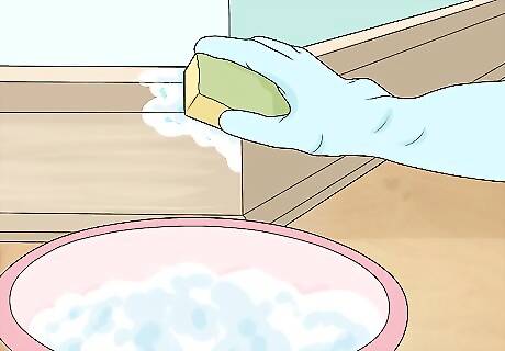 Clean the skirting boards with a damp sponge. Fill a bucket with water and non-soapy detergent (i.e. Dirtex, Spic & Span, or TSP No-Rinse Substitute). Dip your sponge in this mixture and wring the sponge out in the bucket before applying it to the boards. Then, wash the wood with the sponge by starting at the bottom of the skirting board and using up-and-down strokes. Give it at least an hour to dry before moving forward. If you’re short on time, you can use a dry brush to get rid of the dust instead.