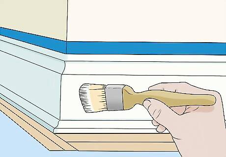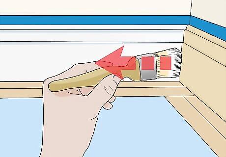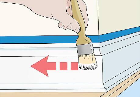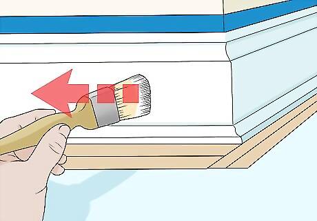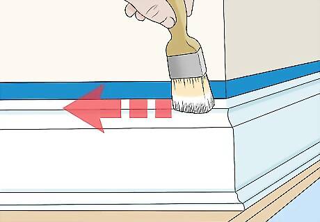 Cut in the edges of the skirting board. Start painting on the rounded top edge of the skirting board using a stroke called cutting. Hold your brush so that the wide face of the bristles are facing the floor, and drag the narrow part along the top of the skirting board. Then, repeat this process for the bottom of the board.