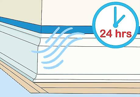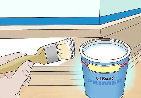 Prime the skirting board with an oil-based primer. Using your angled 5 cm (2.0 in) brush, brush a layer of primer over the skirting boards. Use an oil-based primer for maximum durability, and let it dry for 24 hours. This will help the paint stick to the skirting boards. Some primers have shorter dry times — read the label on the can of your primer for more information.